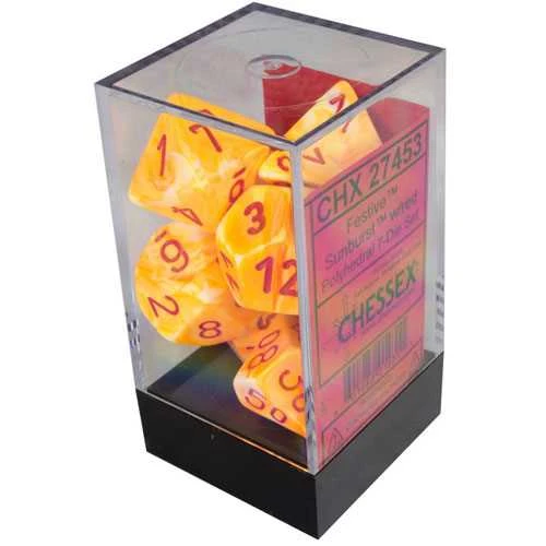 “Make a splash at the gaming table with this gorgeous set of dice, readying you for any challenge!”