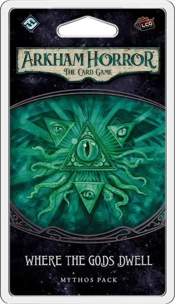 Come face to face with madness in Where the Gods Dwell, the fifth Mythos Pack in The Dream- Eaters cycle for Arkham Horror: The Card Game! After your seemingly endless journey across the Dreamlands, you have made your way to the land of Leng, an icy wasteland where you believe the peak of unknown Kadath resides. All the while, a presence taunts you, gnawing at your insides— a wordless voice you cannot hear, but feel within the confines of your mind. A presence that is waiting for you.